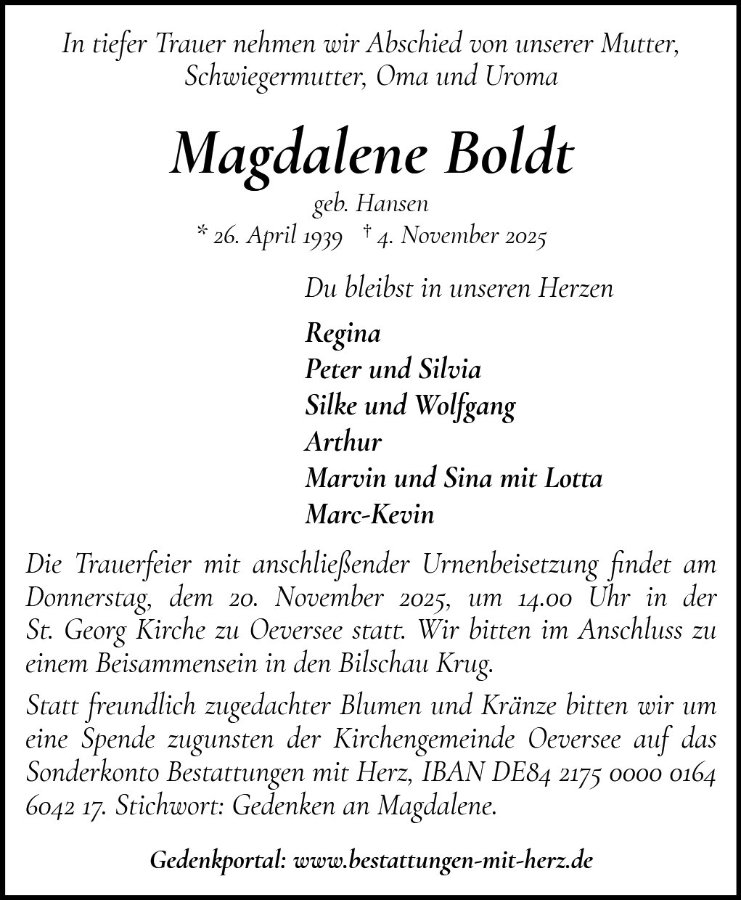 gestorben am 4. November 2025 in Oeversee