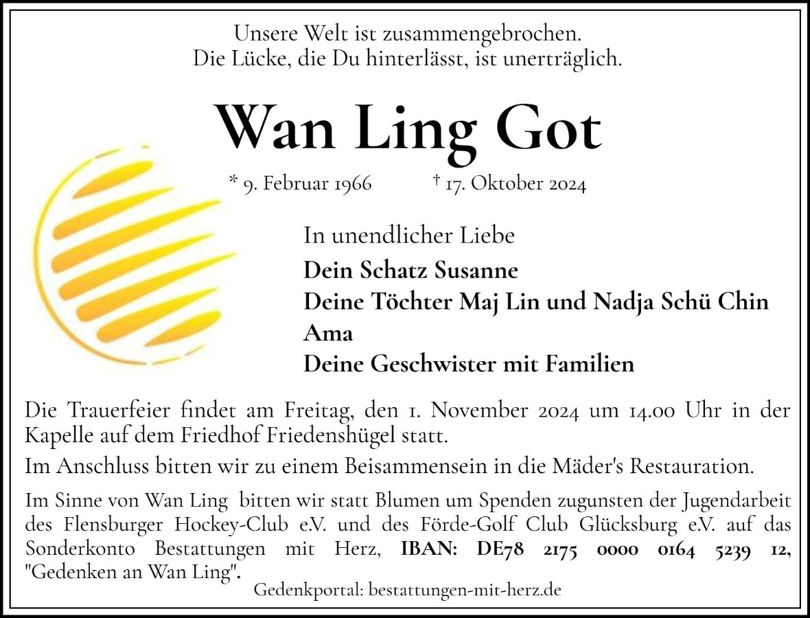Die Zeit heilt nicht alle Wunden, sie lehrt uns nur, mit dem Unbegreiflichen zu leben. Wir sind fassungslos und bestürzt, dass Wan Ling so früh gehen musste.